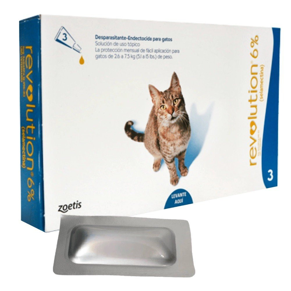 Revolution®, aplicado mensualmente, está indicado para el tratamiento y control de las infestaciones por pulgas (especies de Ctenocephalides), el control de las microfilarias del parásito Dirofilaria immitis (nematodo del corazón) y el tratamiento y control de los ácaros de las orejas (Otodectes cynotis) y los piojos (Trichodectes canis y Felicola subrostratus) en perros y gatos. Revolution® está también indicado para el tratamiento y control de los anquilostomas (Ancylostoma tubaeforme) y los nematodos intestinales (Toxocara cati) en gatos y los nematodos intestinales (T. canis, Toxascaris leonina) y la sarna (Sarcoptes scabiei) en perros, y como una ayuda en el control de las garrapatas (Rhipicephalus sanguineus y Dermacentor variabilis) en perros.